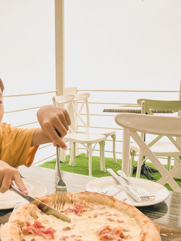 Before heading to La Parisienne Sky, my son suddenly mentioned that he wanted to eat at a restaurant. He was curious about slicing his own dish with a knife. It was such a small, unexpected wish, but I loved it. But, we agreed to order a pizza to share, and it came with individual plates, so he was still able to enjoy the experience of slicing his portion himself. His little hands, focused and proud, made the moment feel even more special.