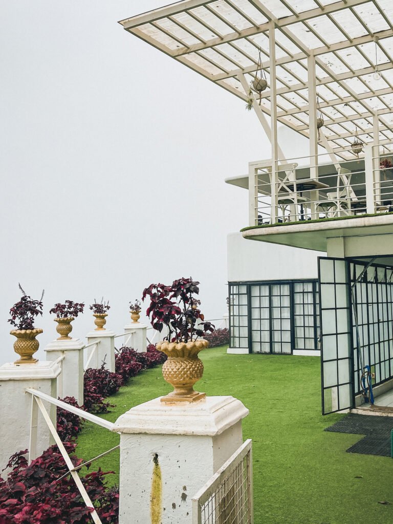 The place was inviting and calm with soft lighting. The air carried a subtle mix of freshly baked bread and sweet pastries. Large windows framed the foggy city below, from the neatly arranged tables to the gentle hum of soft music in the background.