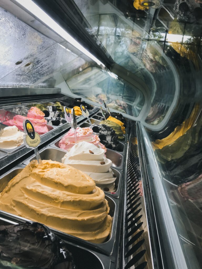 We ordered a Flammekueche, and I was a little confused when it arrived, it didn’t look quite like the picture on the menu. Yet, despite its simple appearance, the flavor was surprisingly rich and satisfying. We also sampled some of their freshly baked breads and gelato, with so many tempting flavors to choose from.