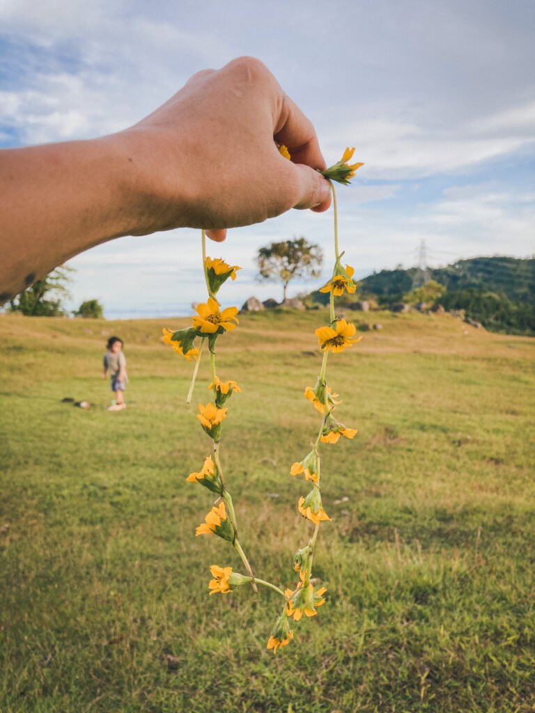 My eldest made me a flower crown, just like he always does whenever we visit this place filled with Wedelia wildflowers. It’s become one of those quiet traditions I hold close to my heart.